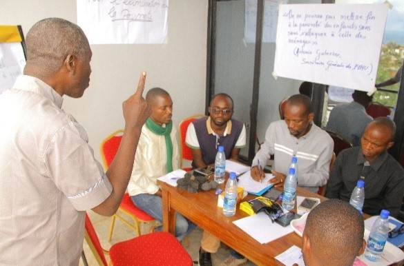 Il rassemblait des personnes qui voulaient en savoir plus sur l’économie humaine. La plupart des participants appartenaient à des organisations : organisations de femmes, de jeunes, de défense des droits humains, de défense des victimes de violences ; une professeure d’université et un enseignant-chercheur de l’Institut supérieur de Développement rural ; des organisations catholiques, musulmanes et protestantes ; des auto-entrepreneurs ; une représentante de la Fédération des PME de RCA ; un représentant de l’ONU ; des journalistes.